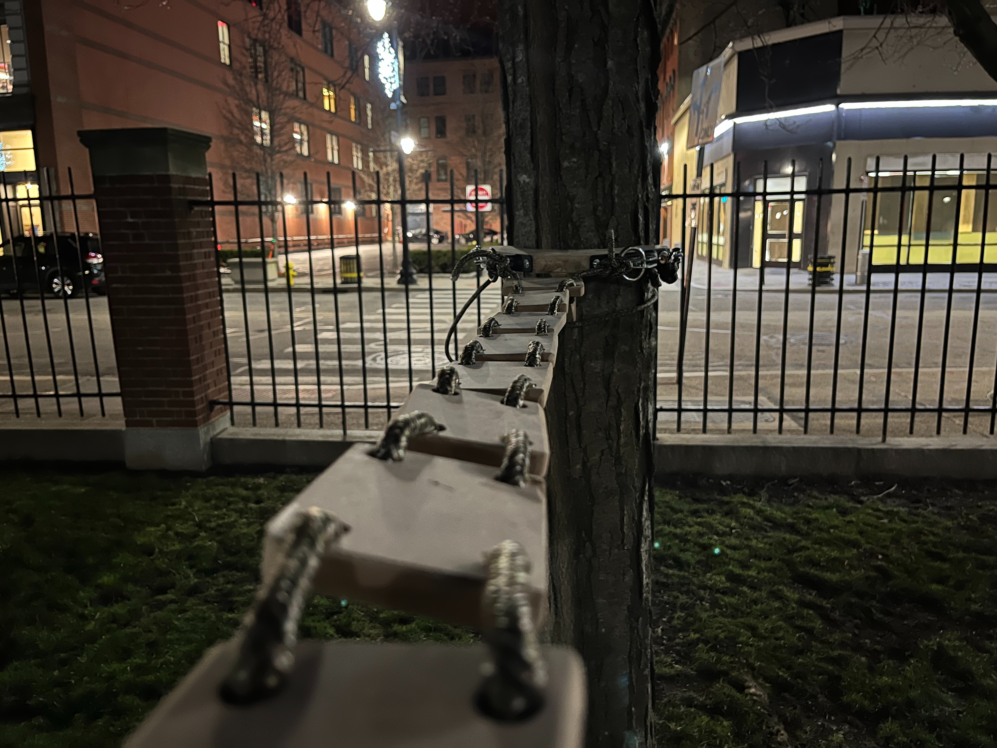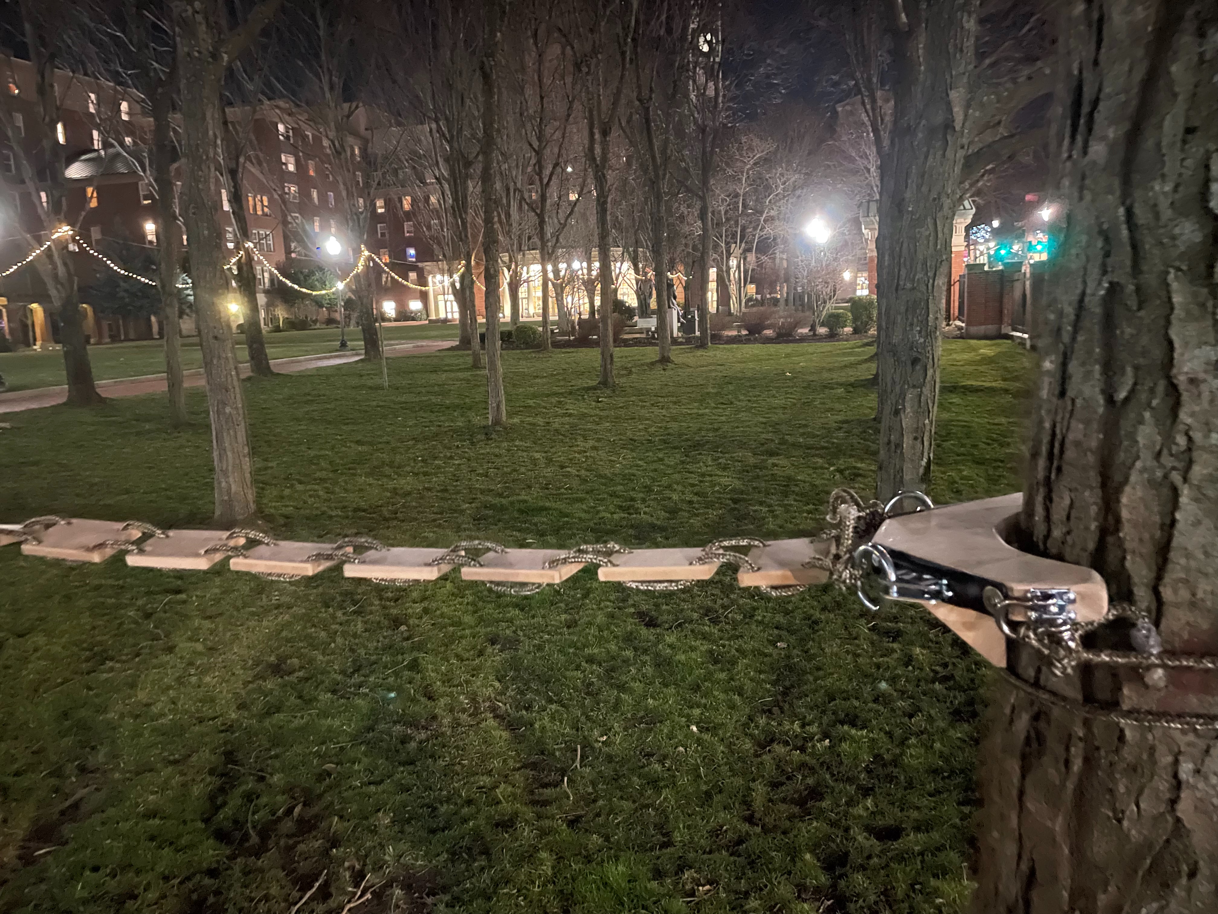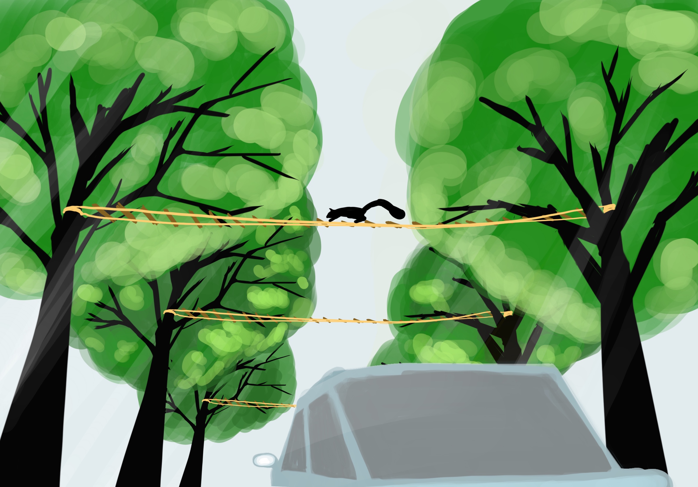 The Squirrel Bridge helps squirrels navigate through the air without being affected by human traffic. In my design, platforms anchored to trees or posts have detachable hooks that make it easy to build more passages between trees or posts.